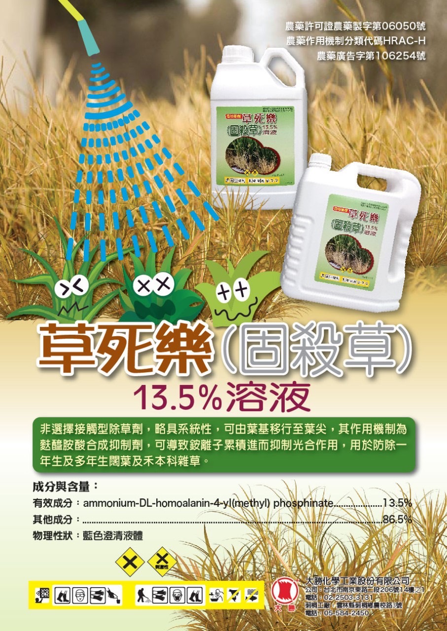商品成份:固殺草農藥登記字號:農藥製 06050農藥製字第06050號農藥許可證參考使用範圍:點我