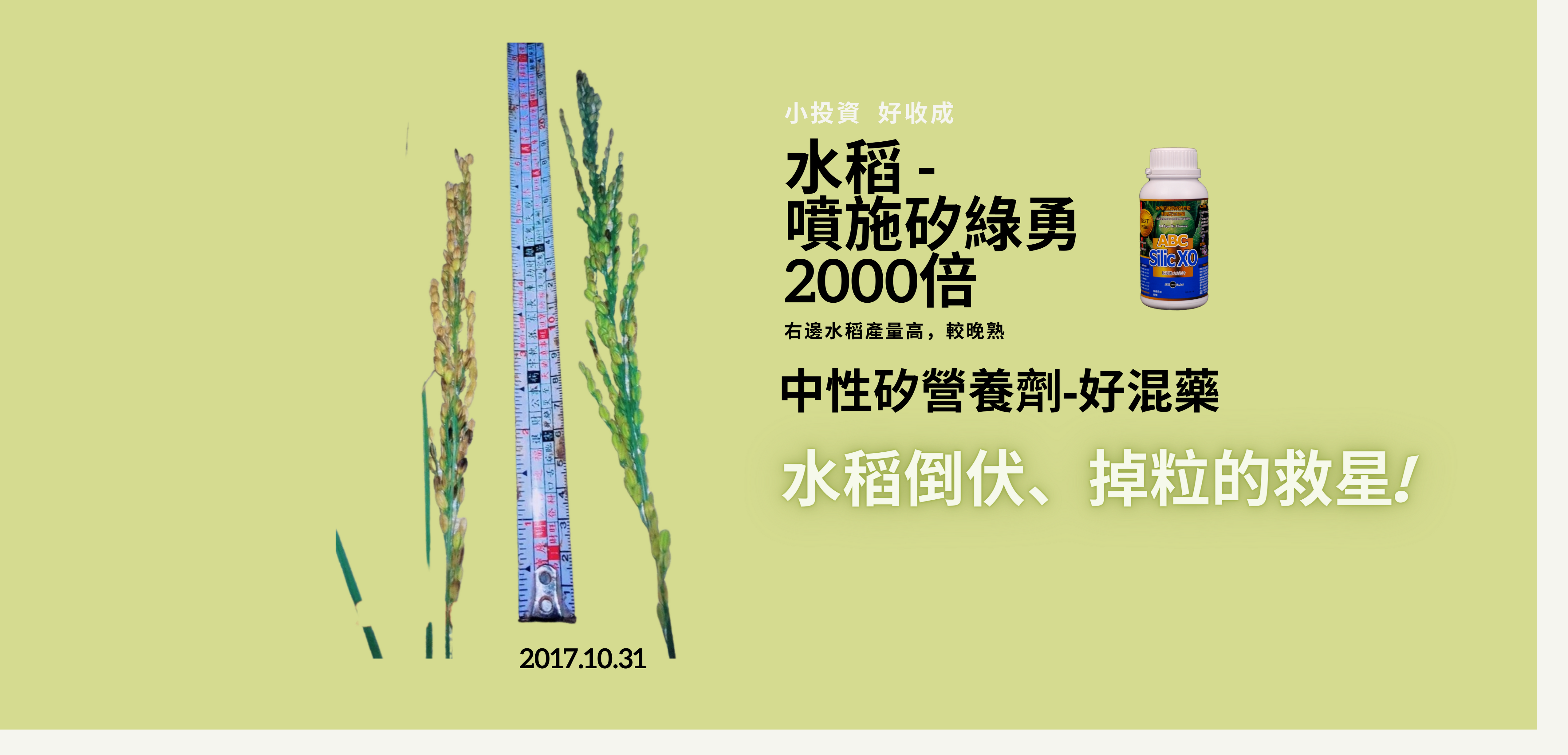 商品成份:水溶性錳(0.15%)、全鋅(0.07%)、水溶性氧化矽(8%)