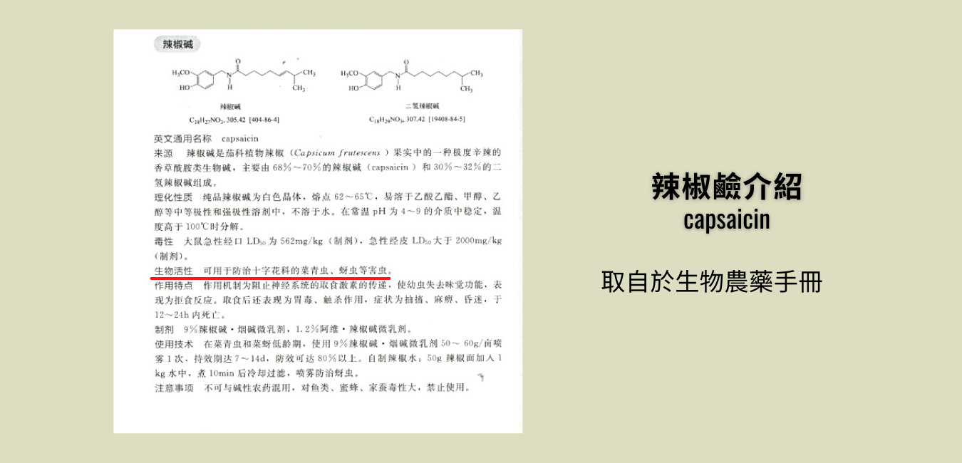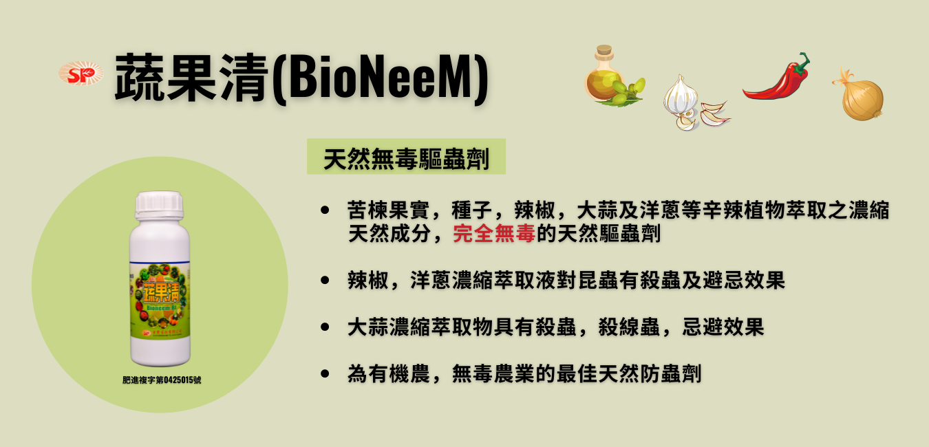 原料:苦楝萃取物、辣椒萃取物、大蒜萃取物、洋蔥萃取物、蘆薈萃取物、木醋液、幾丁酵素、硝酸鉀。