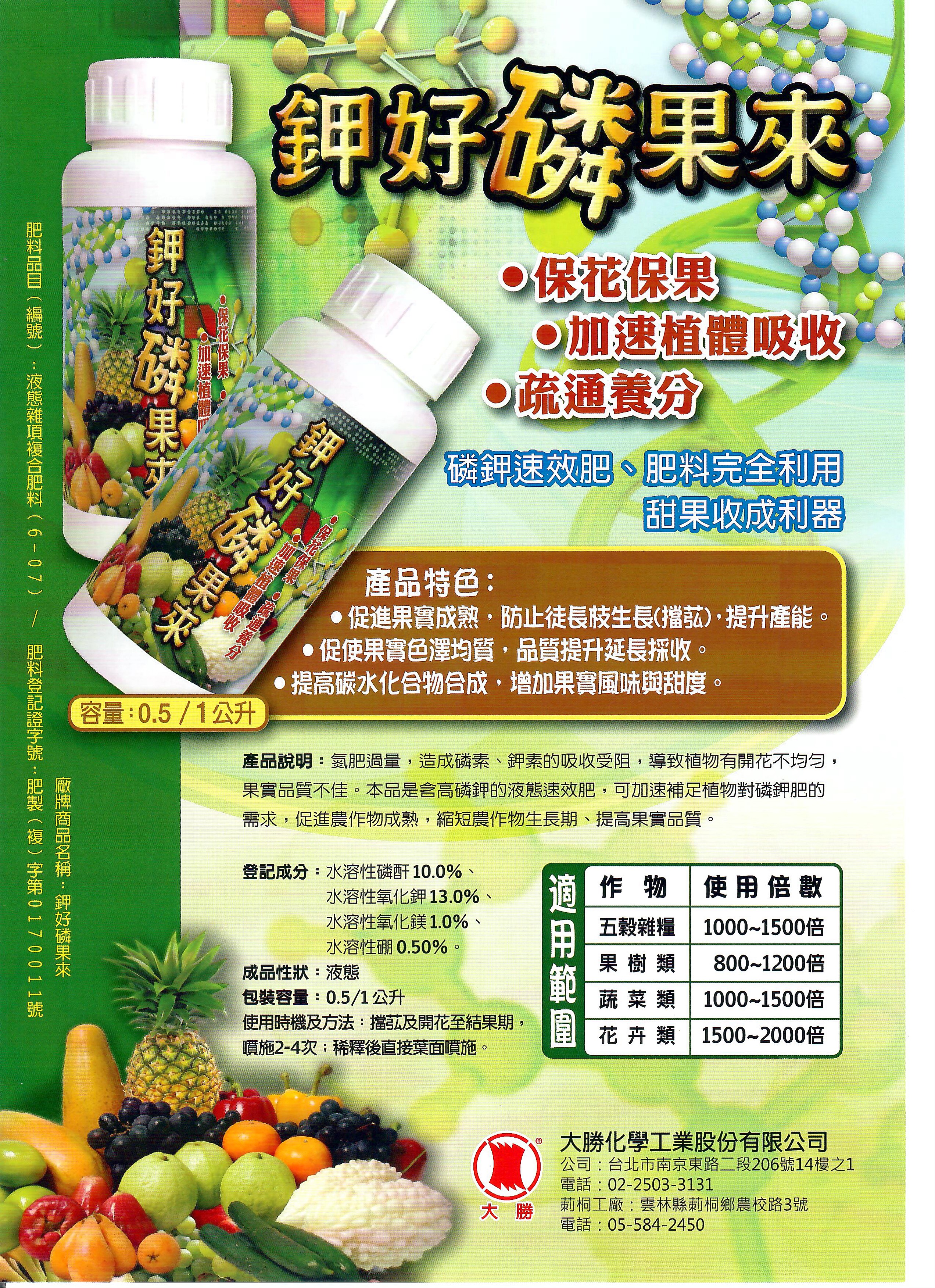 商品成份:水溶性磷酐(10%)、水溶性氧化鉀(13%)、水溶性氧化鎂(1%)、水溶性硼(0.5%)