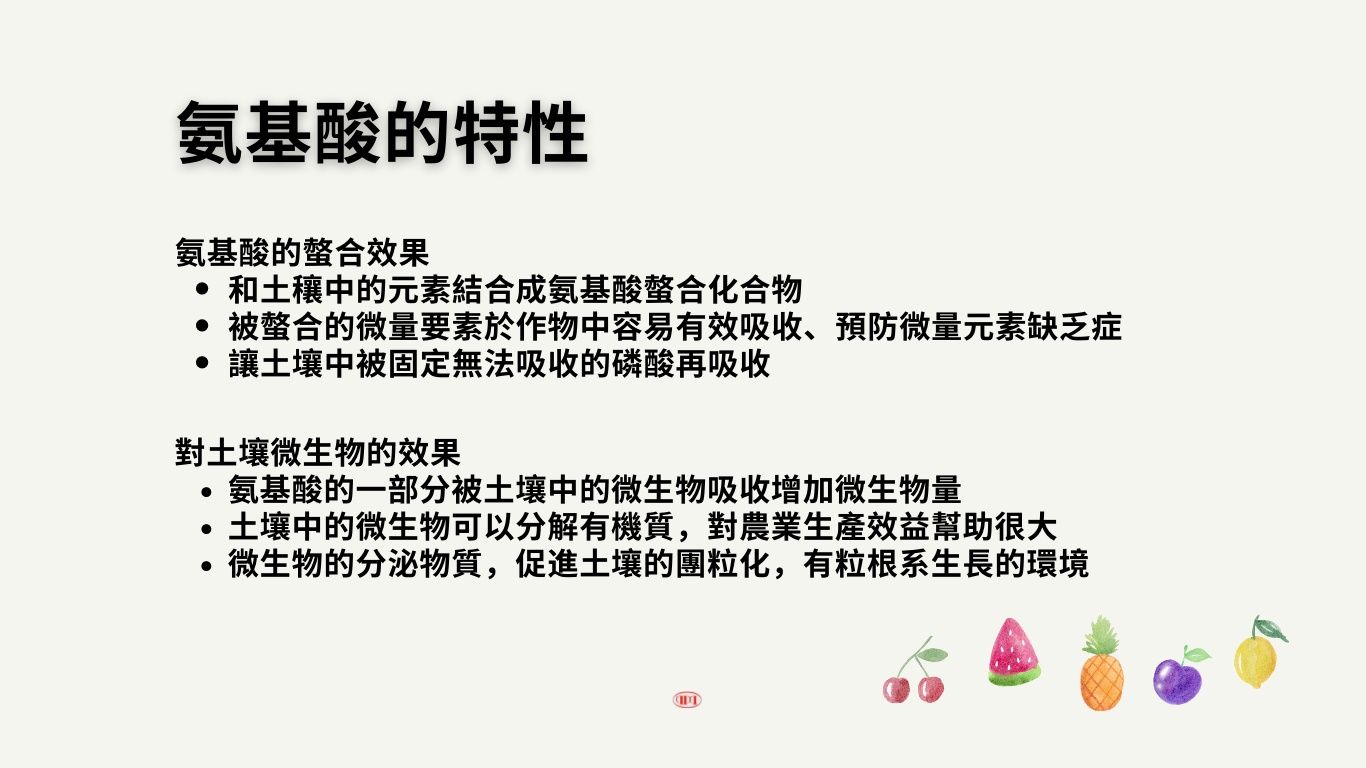 原料:胺基酸(甘胺酸、丙胺酸)、硫酸鎂、硫酸錳、硼酸、EDTA-鐵、硫酸銅、硫酸鋅、鉬酸鈉。