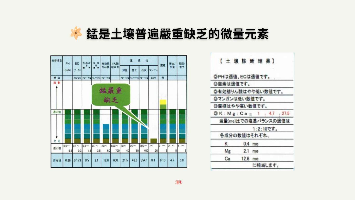 商品成份:全氮(2.5%)、水溶性氧化鎂(13%)、水溶性硼(0.3%)、水溶性錳(5.5%)、全鋅(0.07%)、水溶性(0.04%)、水溶性鐵(0.42%)、全銅(0.04%)